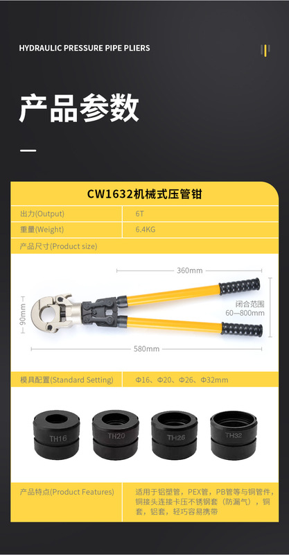 - Model: CW-1632 (U Model Aluminum-Plastic Pipe Press 16, 20, 25, 32)