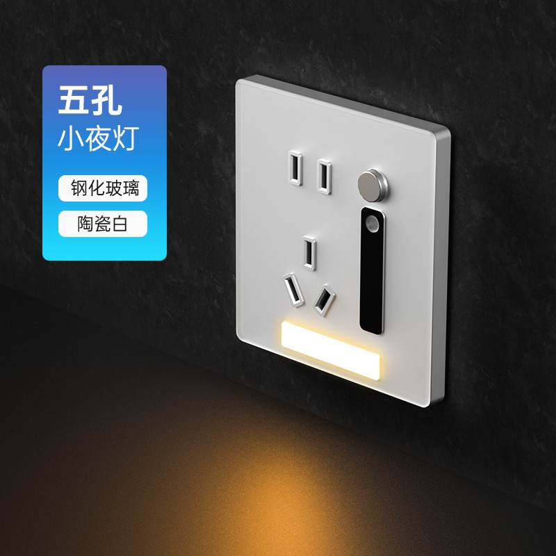 - Model: 5-socket + sensor night light [White tempered glass]