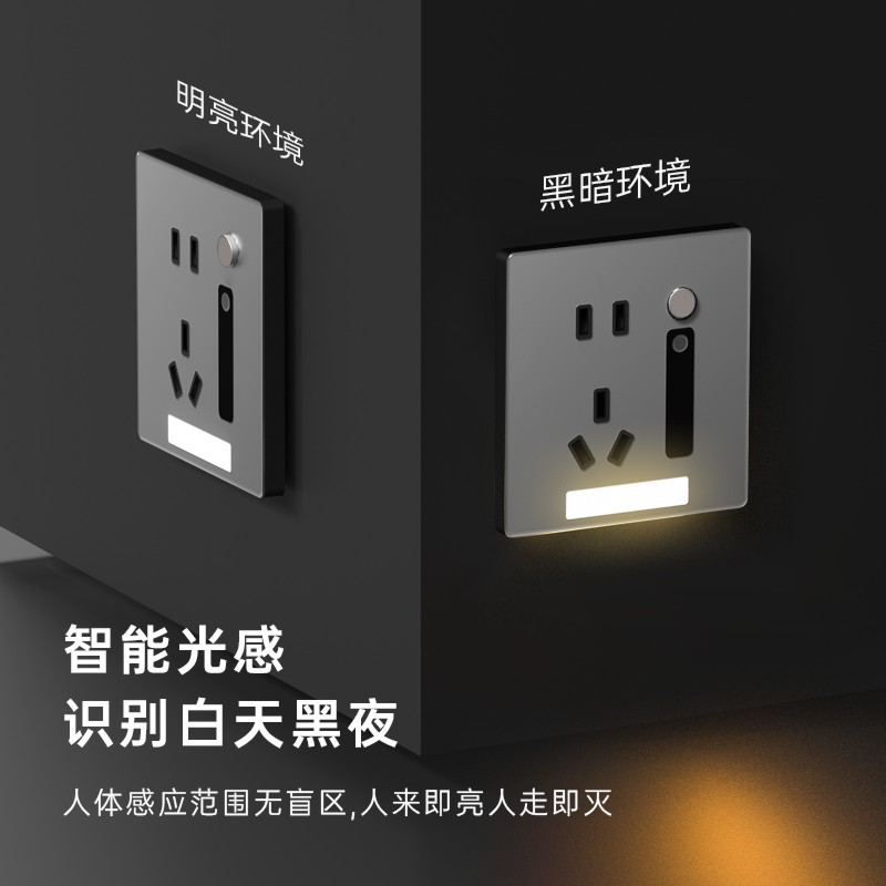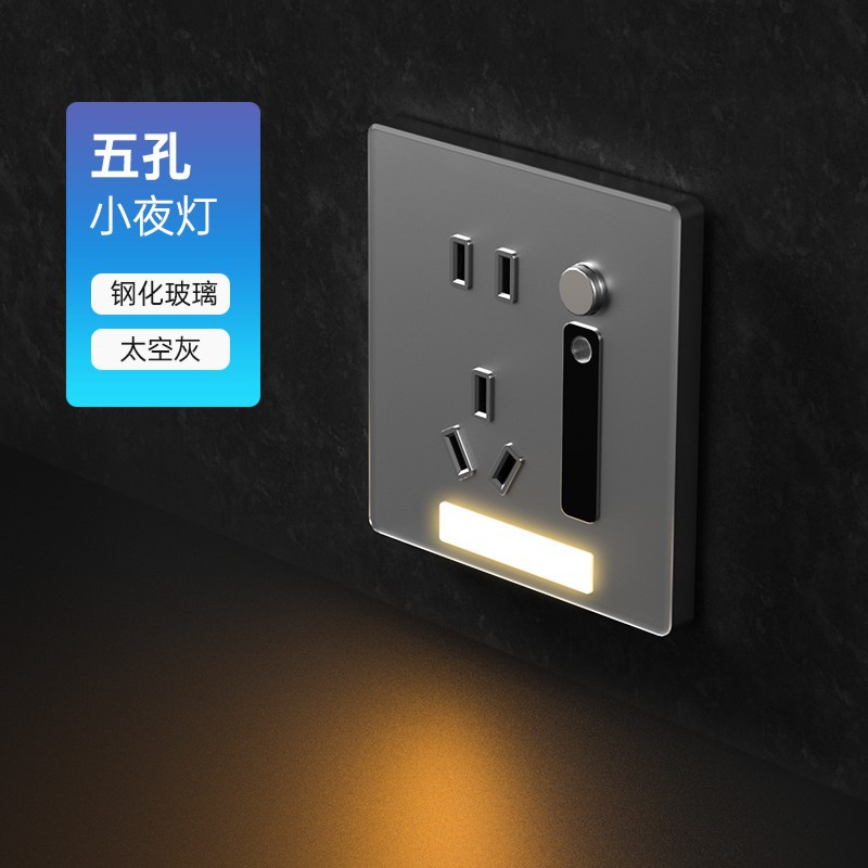 - Model: 5-socket + sensor night light [Gray tempered glass]