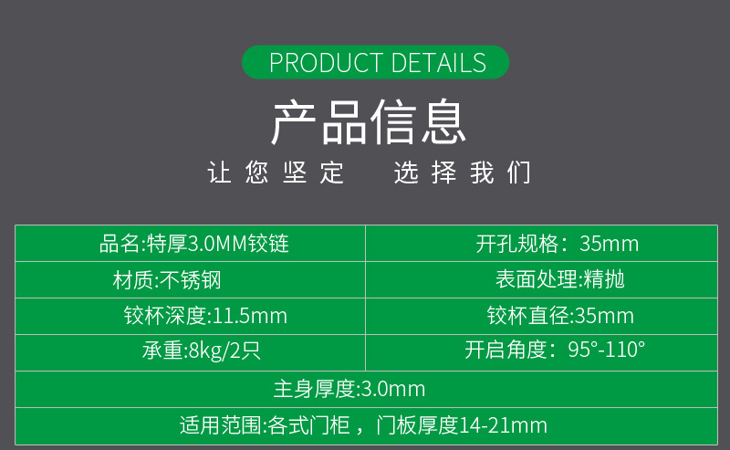 - 型號:3.0厚牛頭鉸鏈