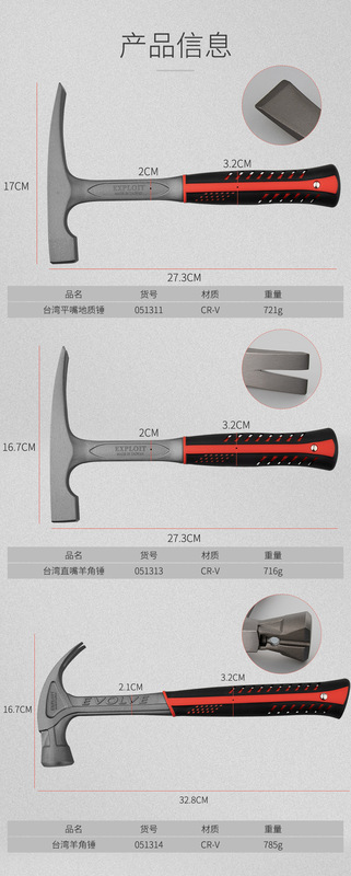 - Model: [Domestic] pointed geological hammer (shock-absorbing handle) 051316