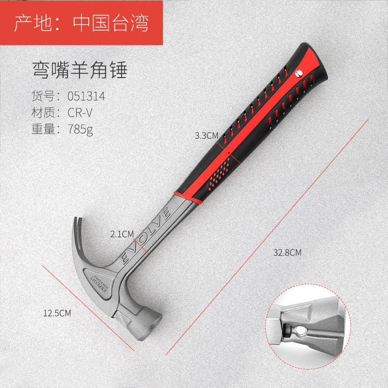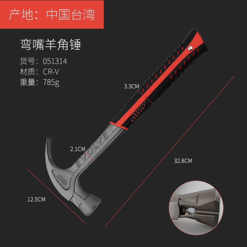 - Hammer head material: chromium vanadium alloy steel