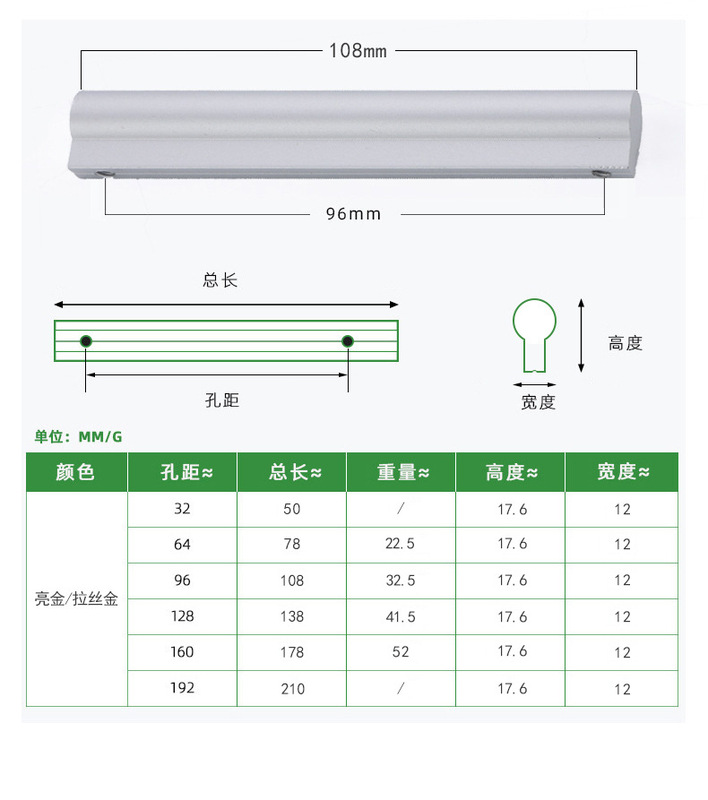 - 規格:拉絲金孔距128