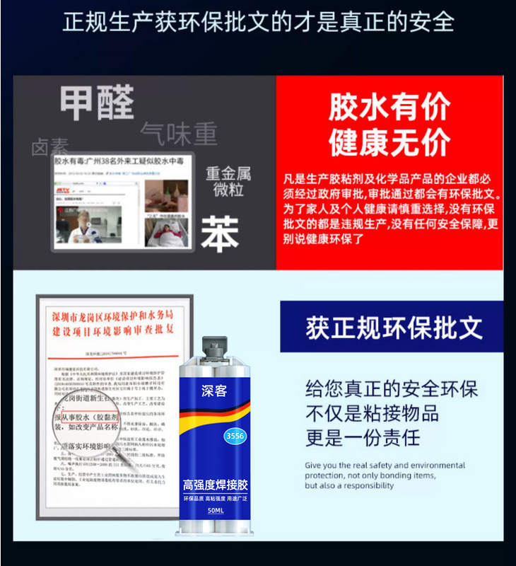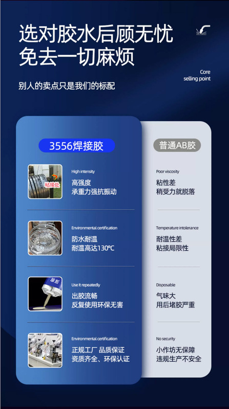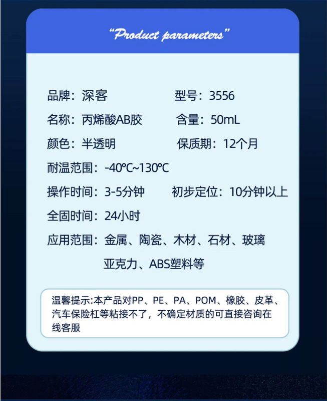- Application range: Adhesion of materials such as metal, stainless steel, ceramics, and marble