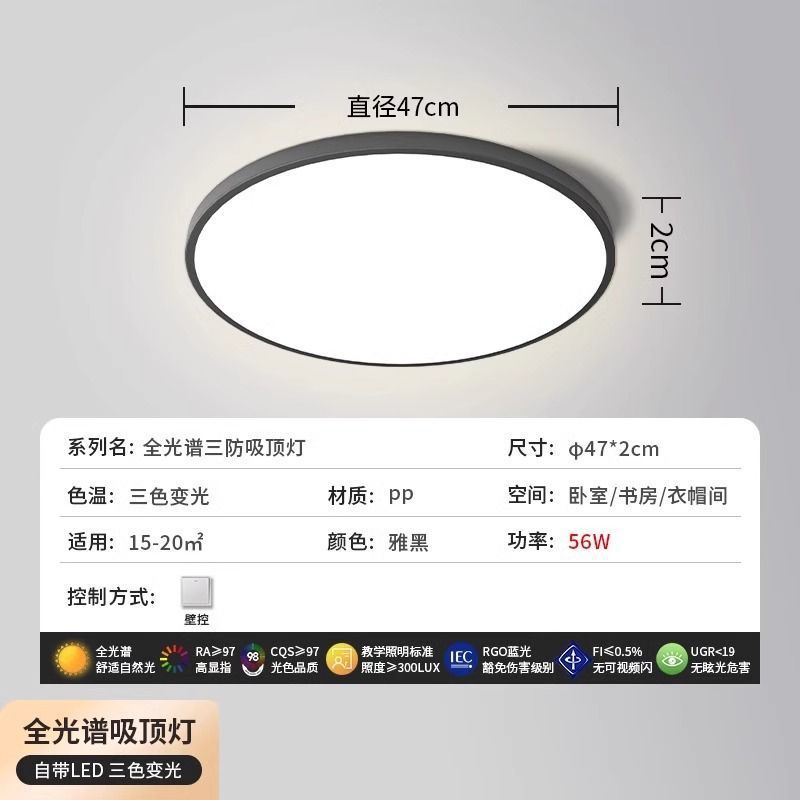 - 光源功率:雅黑全光譜97顯色直徑47cm-三色56瓦