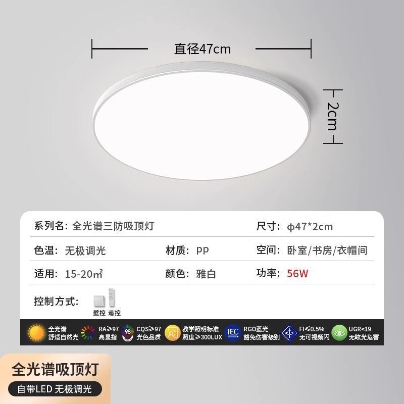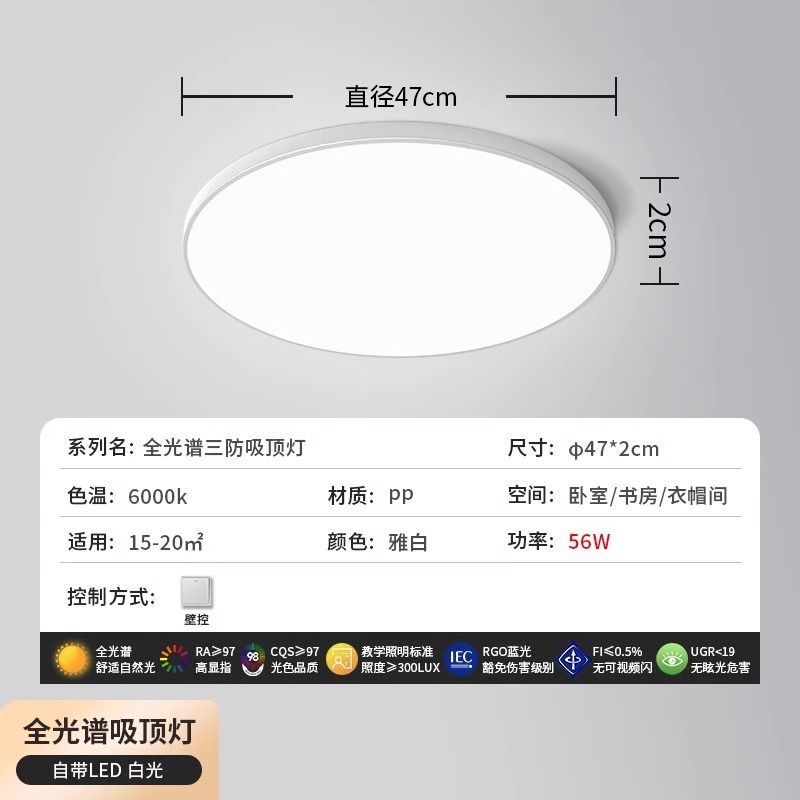 - 光源功率:雅白全光譜97顯色直徑47cm-三色56瓦