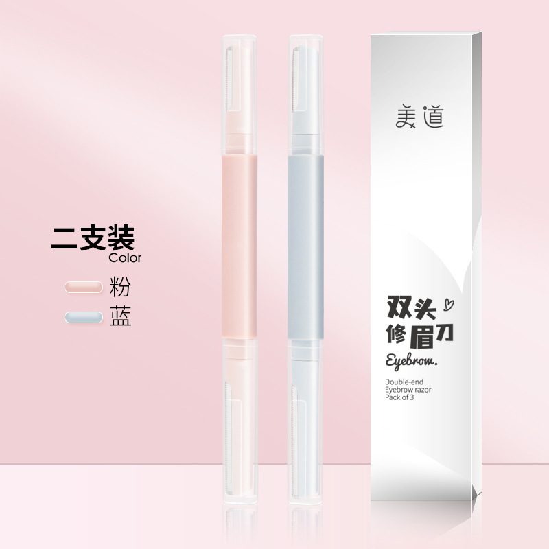 - 規格:35229無logo藕荷粉色+冰川藍色兩支雙頭修眉刀紙盒裝