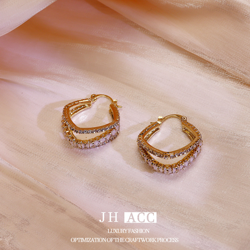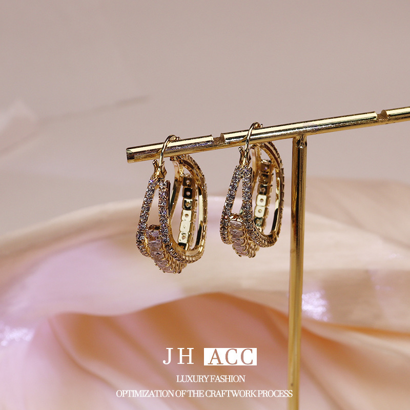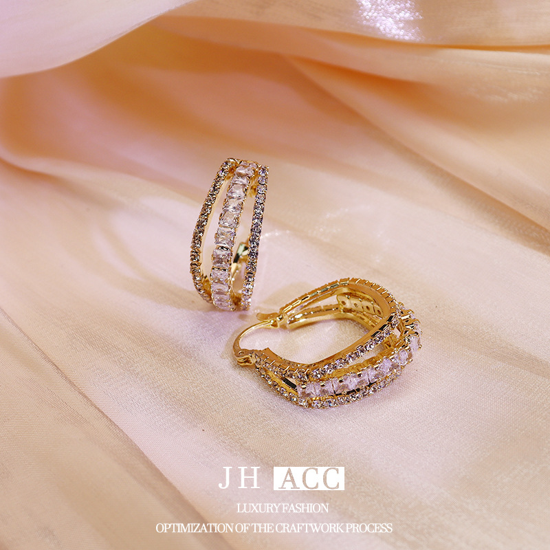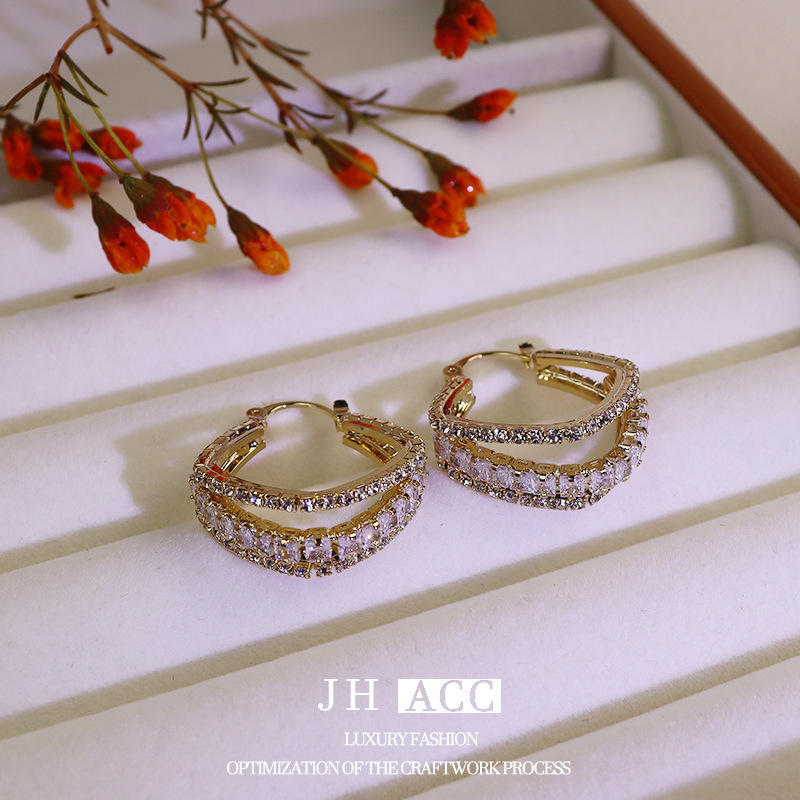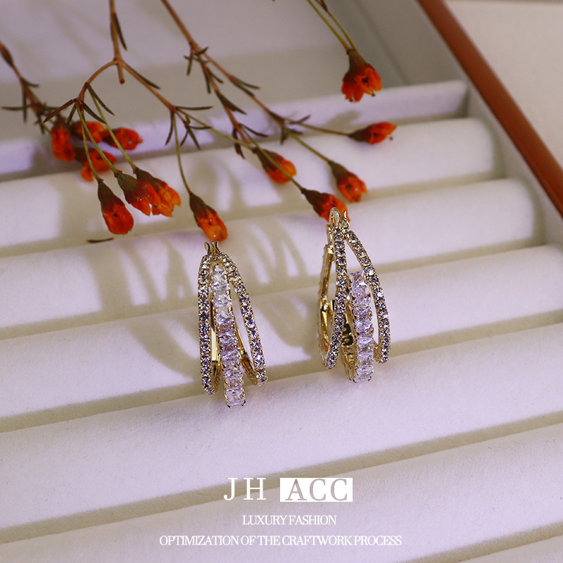 - 樣式:三層鋯石鏤空耳環