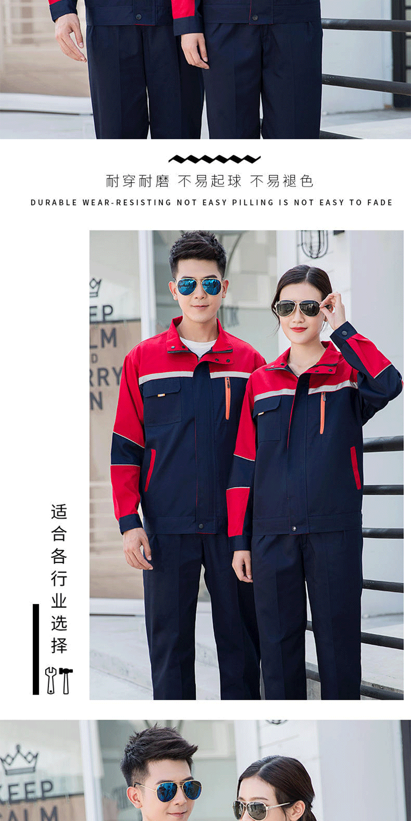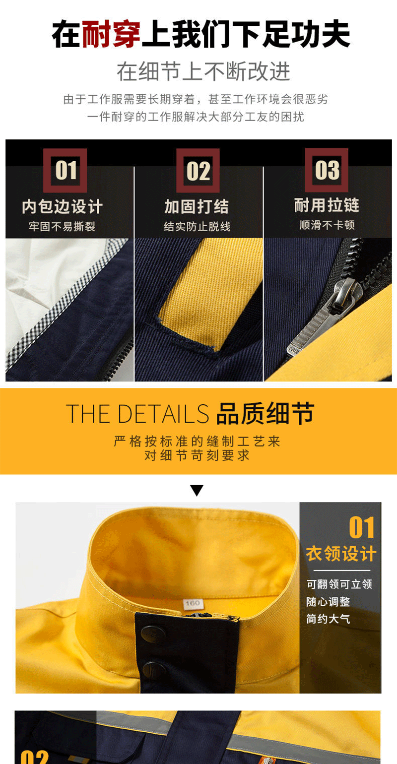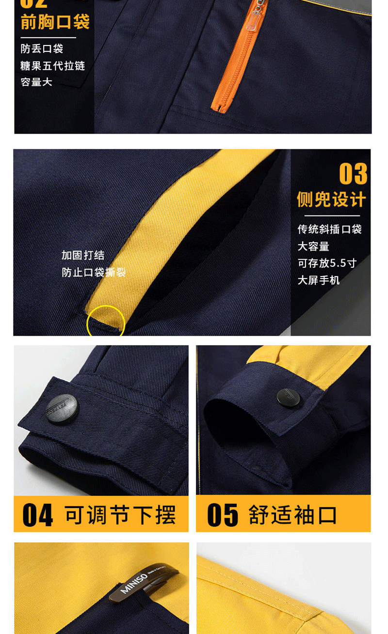 - Applicable occasions: Automotive repair and maintenance suits, electrician suits, factory uniforms