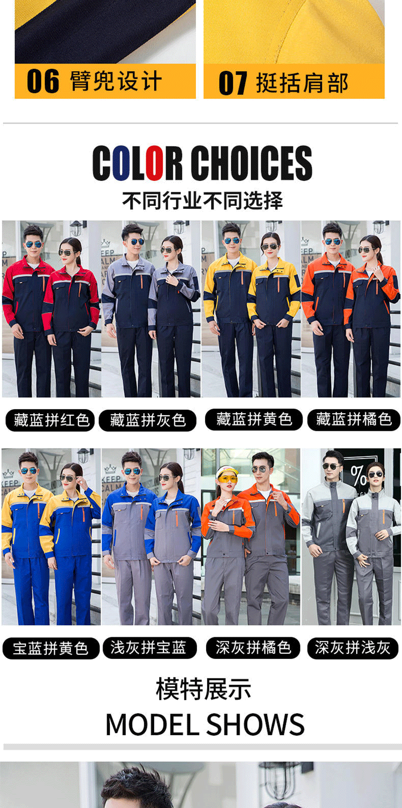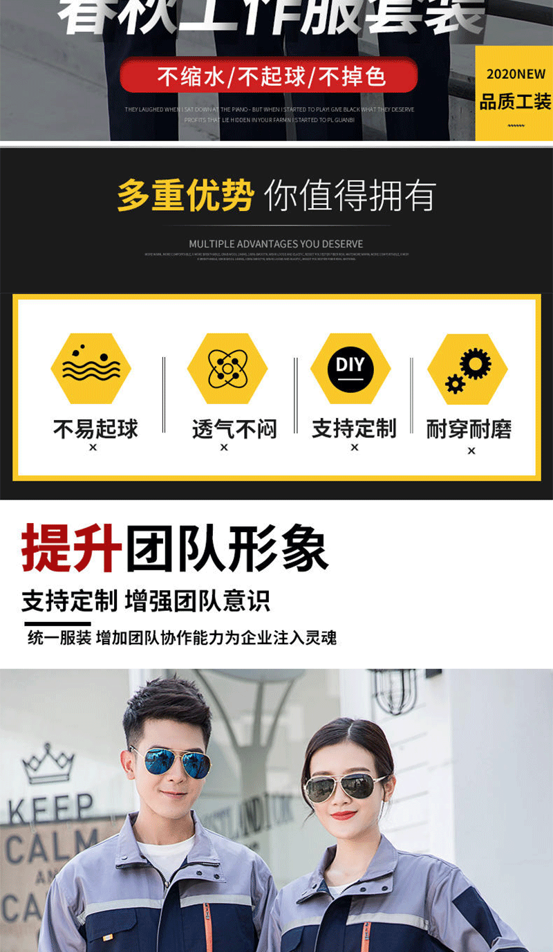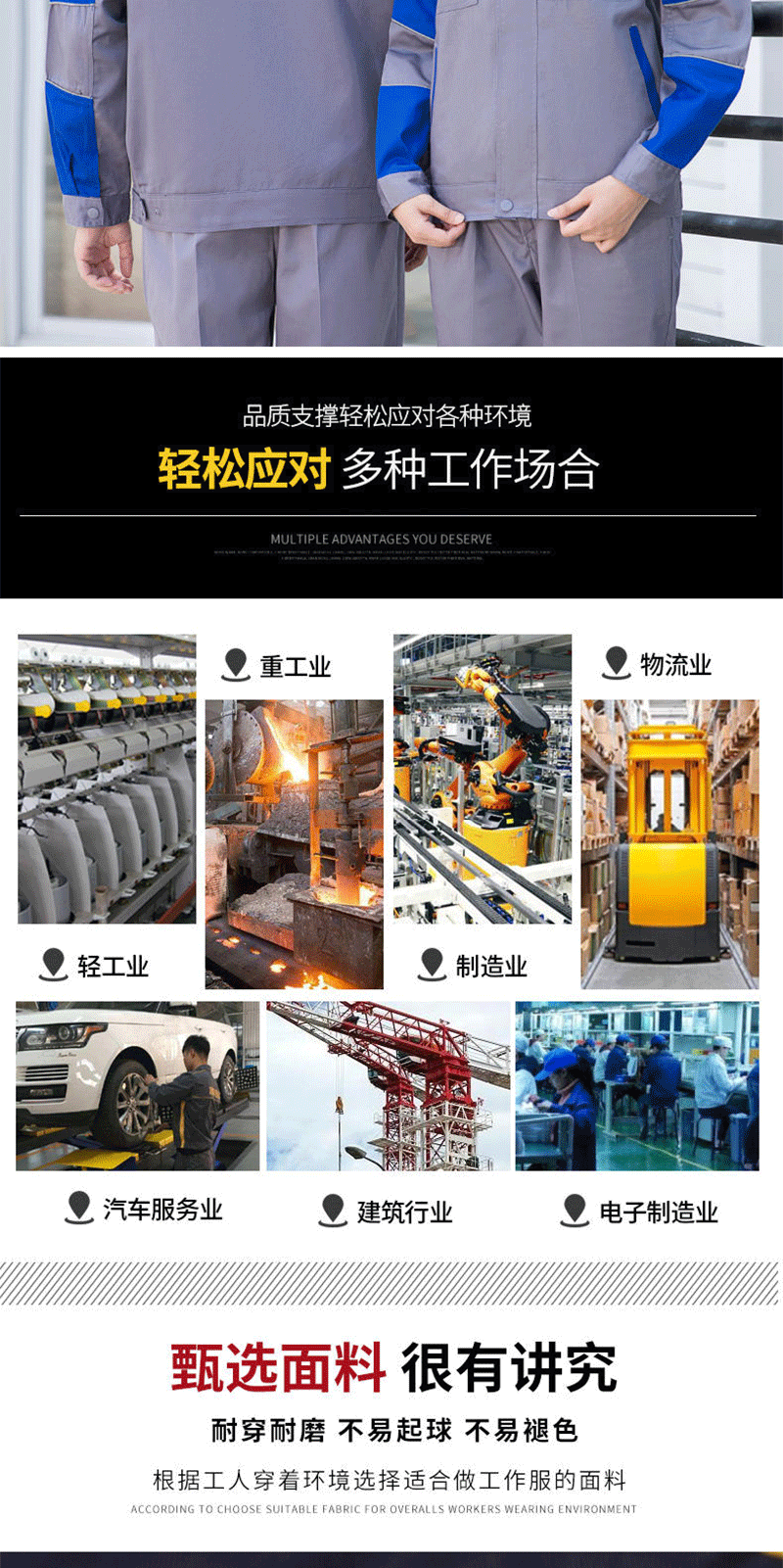 - Applicable occasions: Automotive repair and maintenance suits, electrician suits, factory uniforms