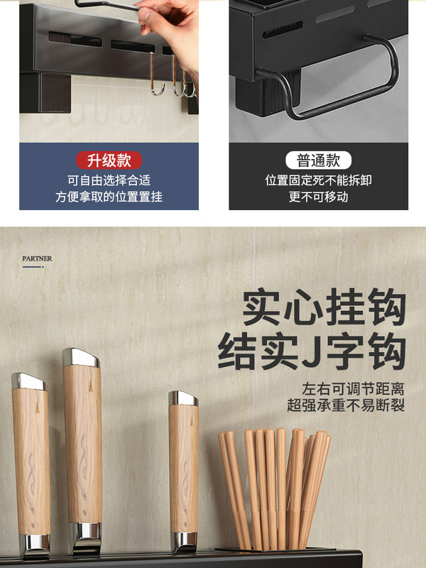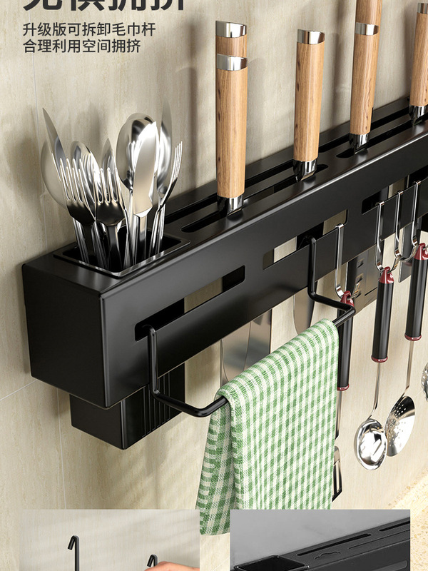 - Number of Layers (Specifications): 50CM - Elegant Black with Towel Bar + Dual Chopstick Holders + 8 Hooks (Punched Hole, Double-Use without Adhesive Nails)