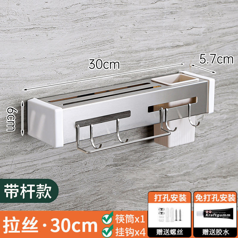 - Number of Layers (Specifications): 30CM - Polished Silver with Towel Bar + Single Chopstick Holder + 4 Hooks (Punched Hole, Double-Use without Adhesive Nails)