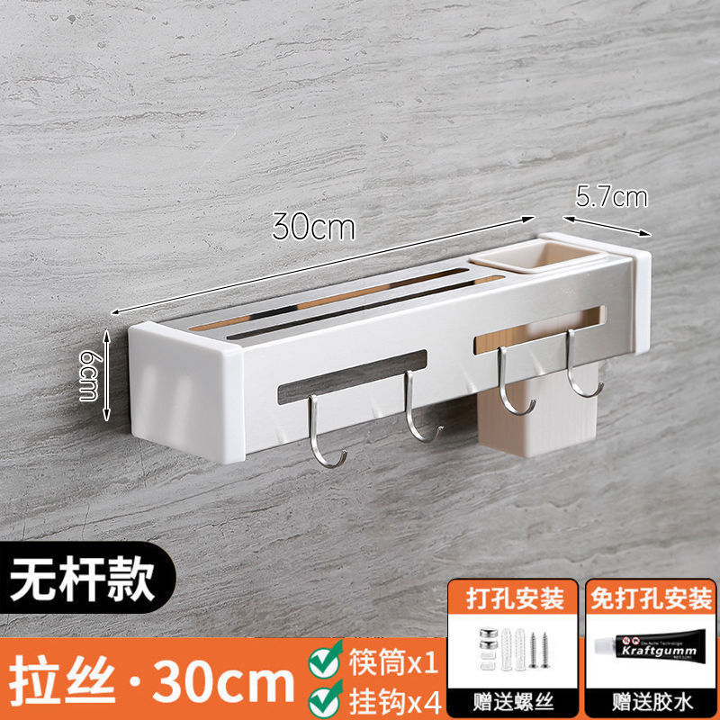 - Number of Layers (Specifications): 30CM - Polished Silver + Single Chopstick Holder + 4 Hooks (Punched Hole, Double-Use without Adhesive Nails)
