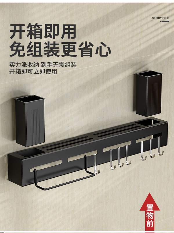 - Number of Layers (Specifications): 30CM - Elegant Black with Towel Bar + Single Chopstick Holder + 4 Hooks (Punched Hole, Double-Use without Adhesive Nails)