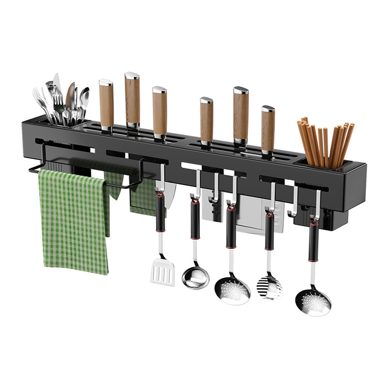 - Number of Layers (Specifications): 60CM - Elegant Black with Towel Bar + Dual Chopstick Holders + 8 Hooks (Punched Hole, Double-Use without Adhesive Nails)
