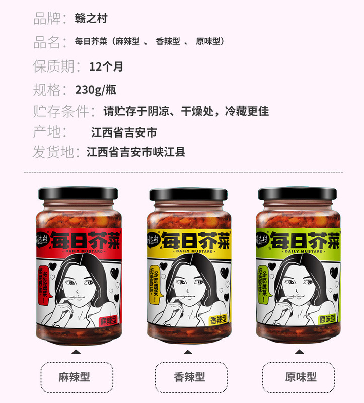 - Packaging Specification: Mustard greens 230g*1 bottle