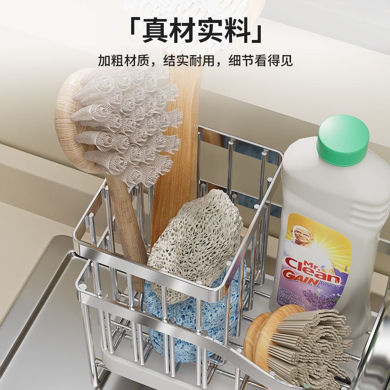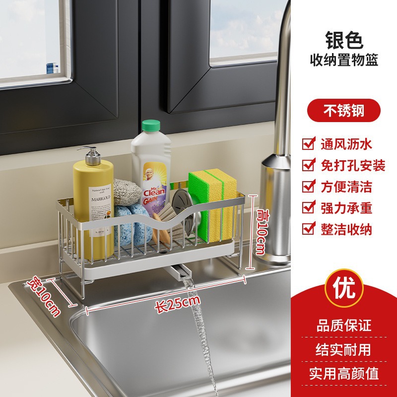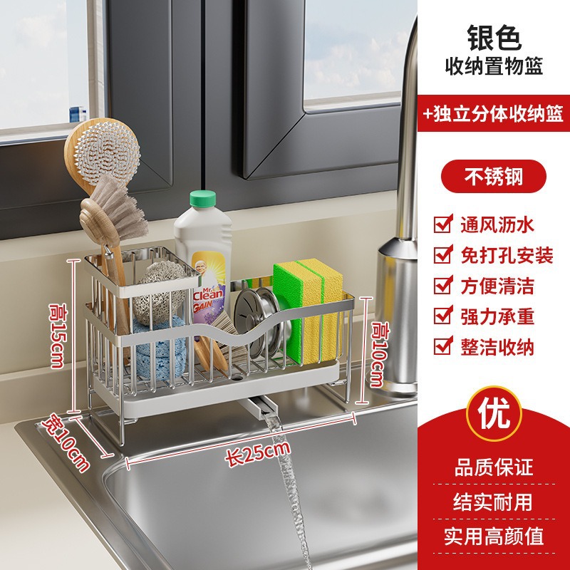 - Number of Levels (Specification): Sponge Rack + Storage Tub - (Stainless Steel, Silver)