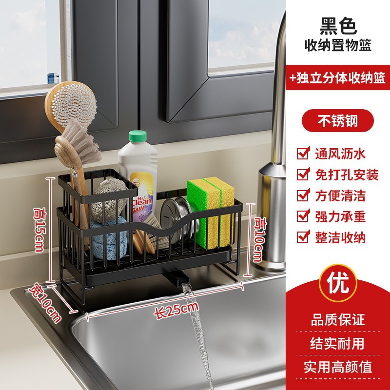 - Number of Levels (Specification): Sponge Rack + Storage Tub - (Carbon Steel, Black)