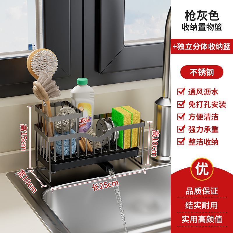 - Number of Levels (Specification): Sponge Rack + Storage Tub - (Carbon Steel, Gray)