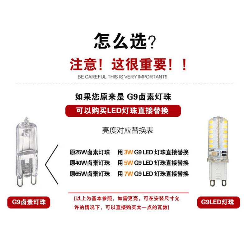 - 功率:G9扁腳220V(4W)無頻閃滿5顆加送1顆
