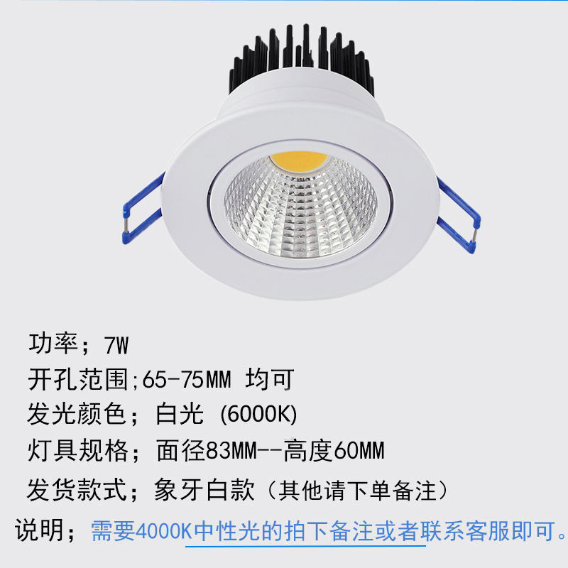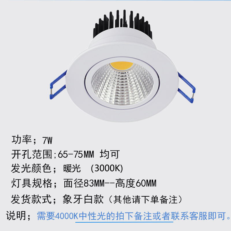 - 功率:大號7w暖光【開孔9-10CM】