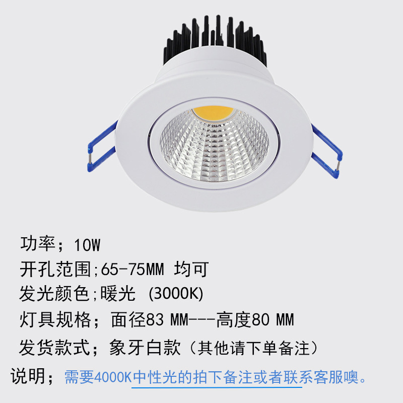 - 功率:小號10w暖光【開孔6.5-7.5CM】