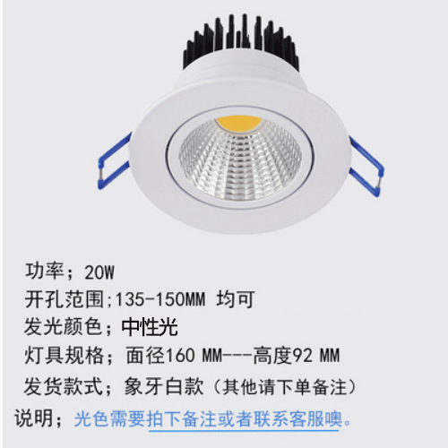 - 功率:20w【開孔13-15CM】中性光