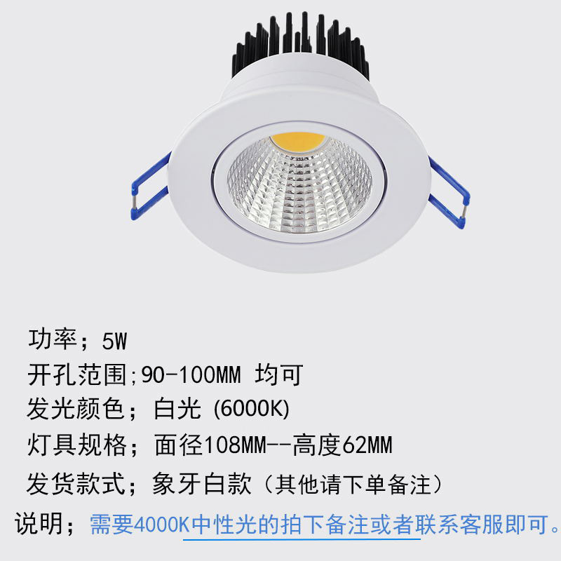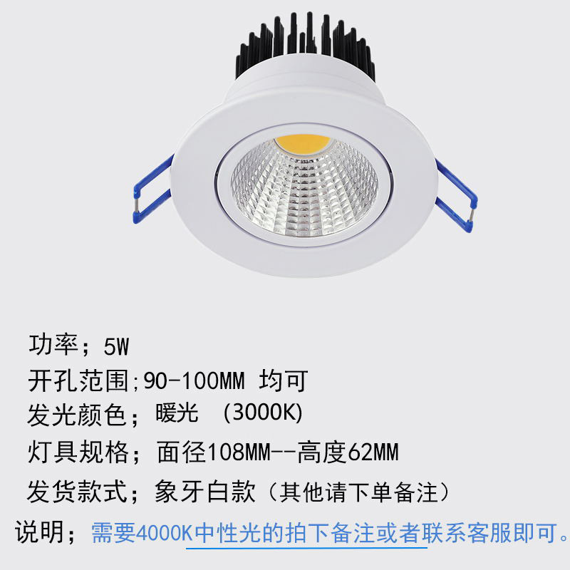 - 功率:大號5w暖光【開孔9-10CM】