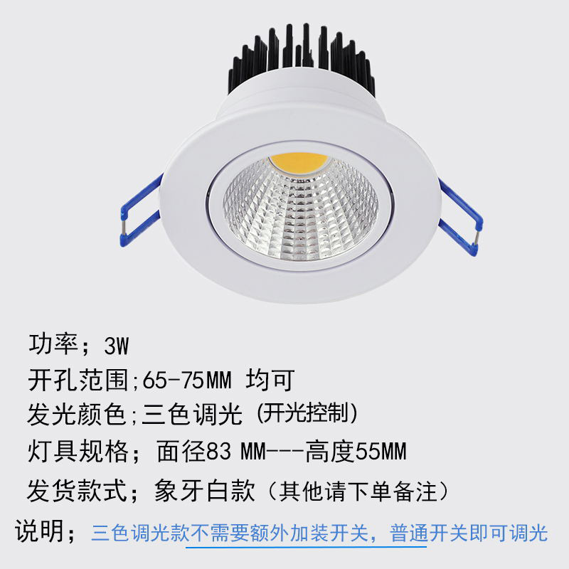- 功率:3w三色調光【開孔6.5-7.5CM】