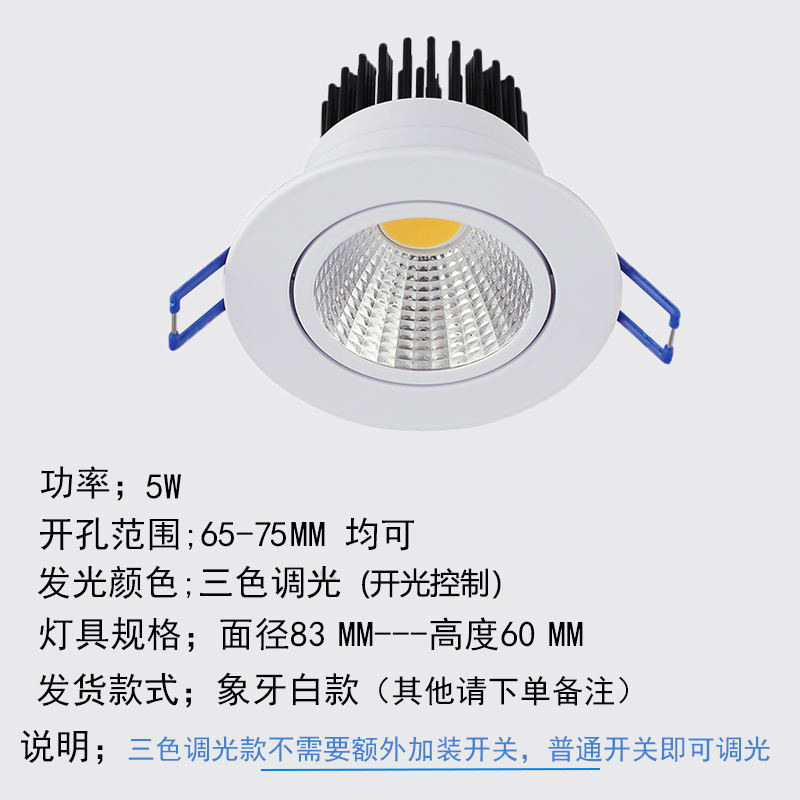 - 功率:5w三色調光【開孔6.5-7.5CM】