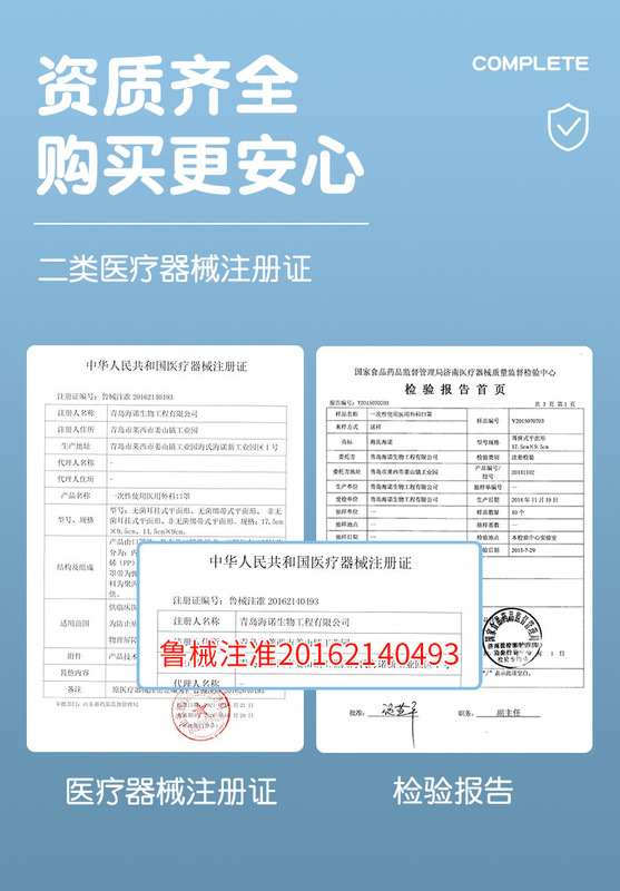 - Medicine (Equipment) Approval Number: Lu Xie Zhun Zhun 20162140493