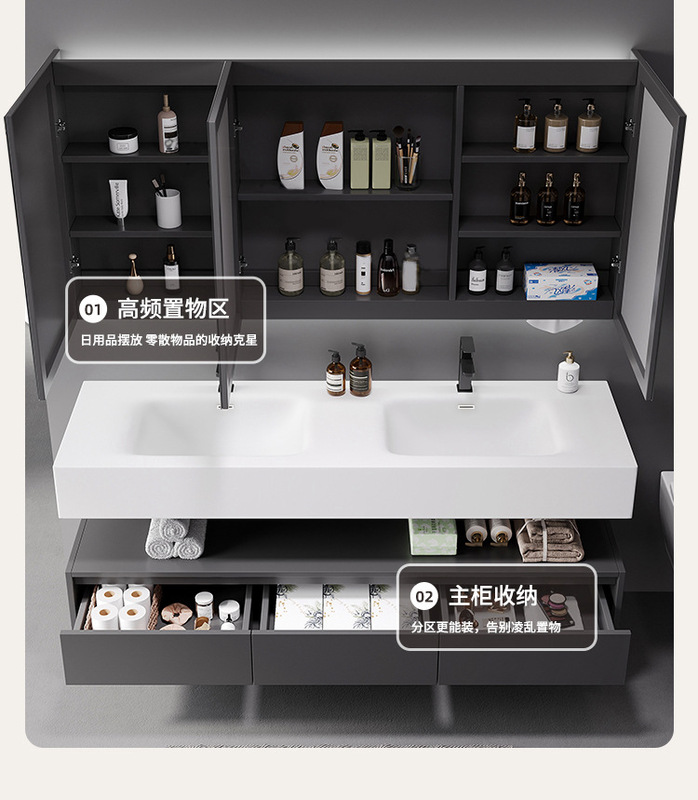 - Specifications: 120cm Qimei Stone Integrated Basin + Smart Mirror Cabinet