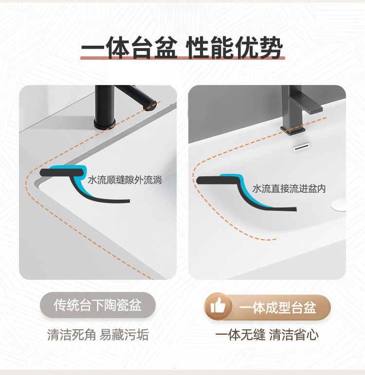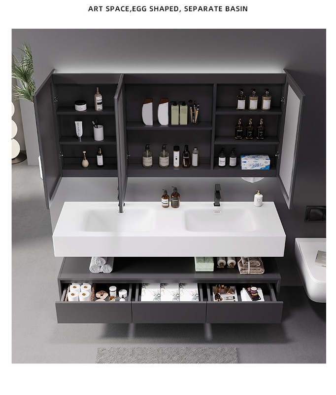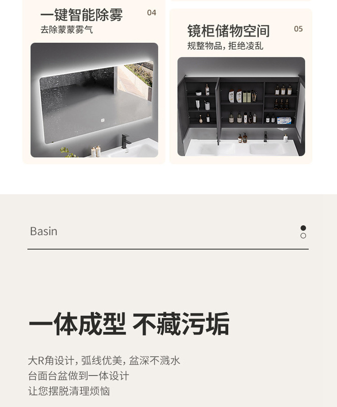 - Specifications: 60cm Qimei Stone Integrated Basin + Smart Mirror Cabinet