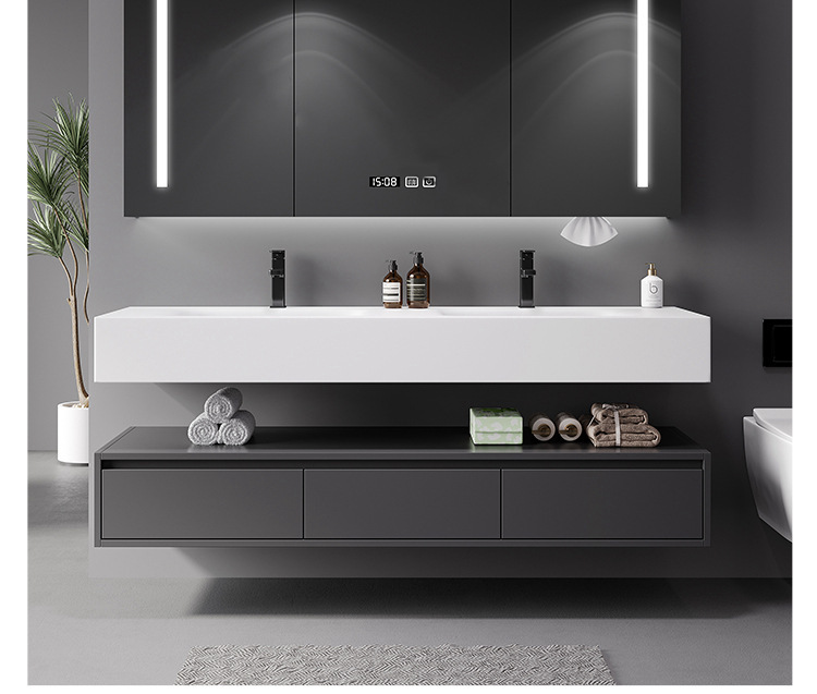 - Specifications: 150cm Qimei Stone Integrated Double Basin + Smart Mirror Cabinet