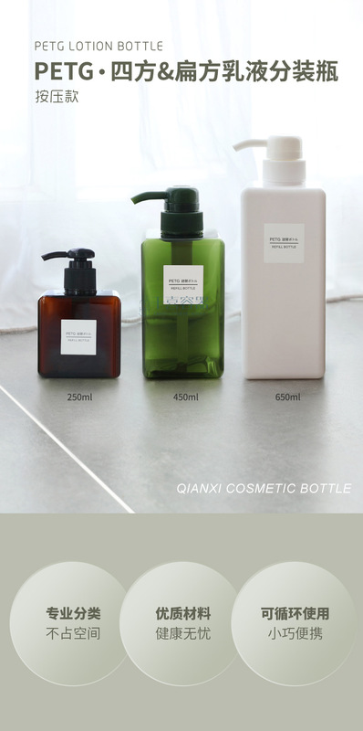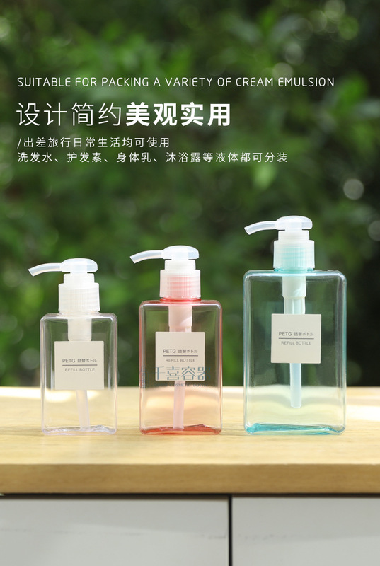 - Specification model: 450ml; transparent lotion bottle; PETG