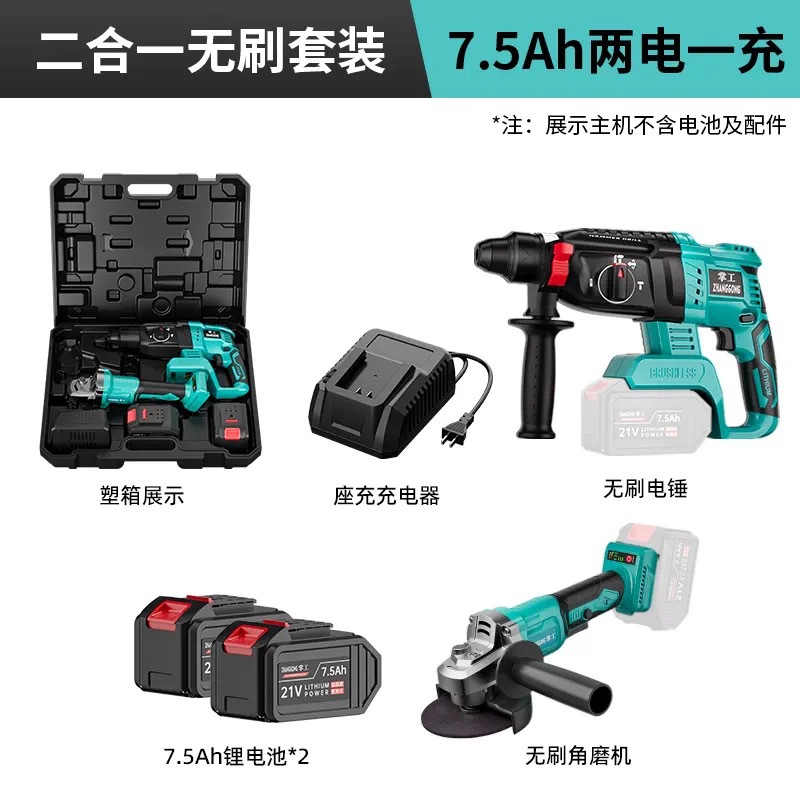 - 型號:電錘7.5Ah兩電一充+角磨機