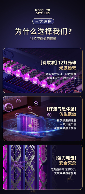 - Mosquito Killing and Repellent Method: Light Wave Attraction + Electric Shock Killing