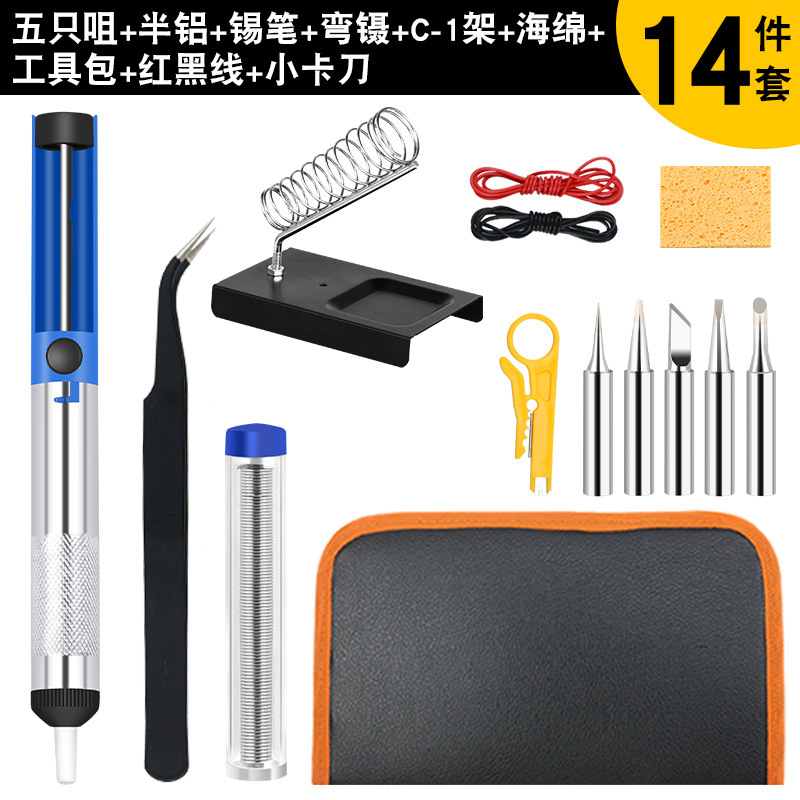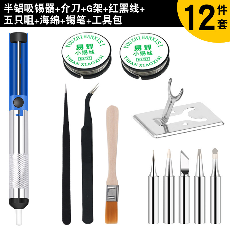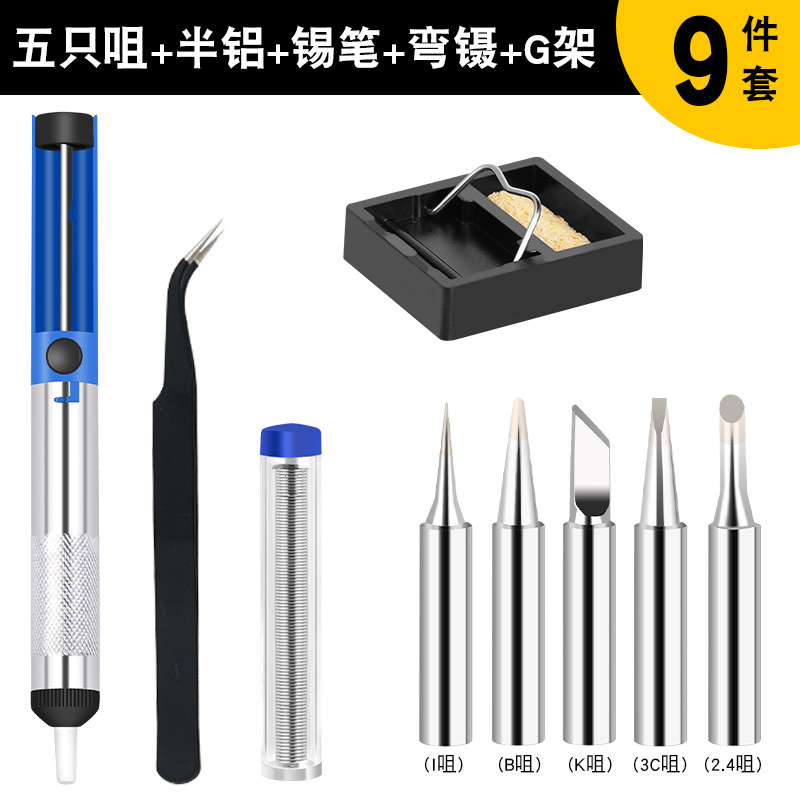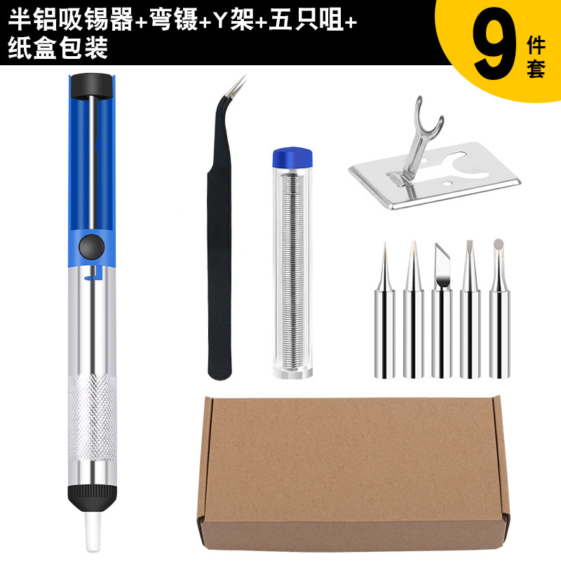 - 型號:錫筆藍色+5個936烙鐵頭+黑彎頭鑷子+半鋁吸錫器+A型烙