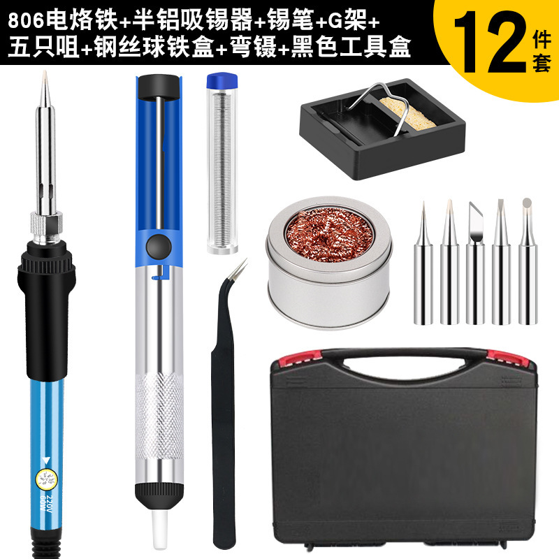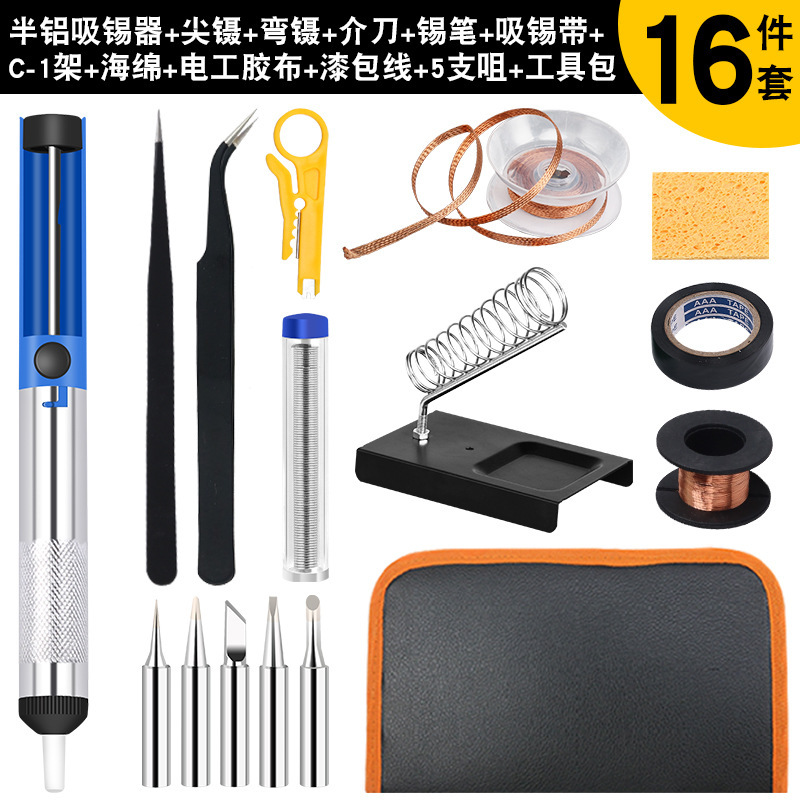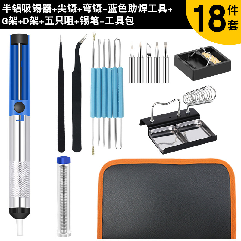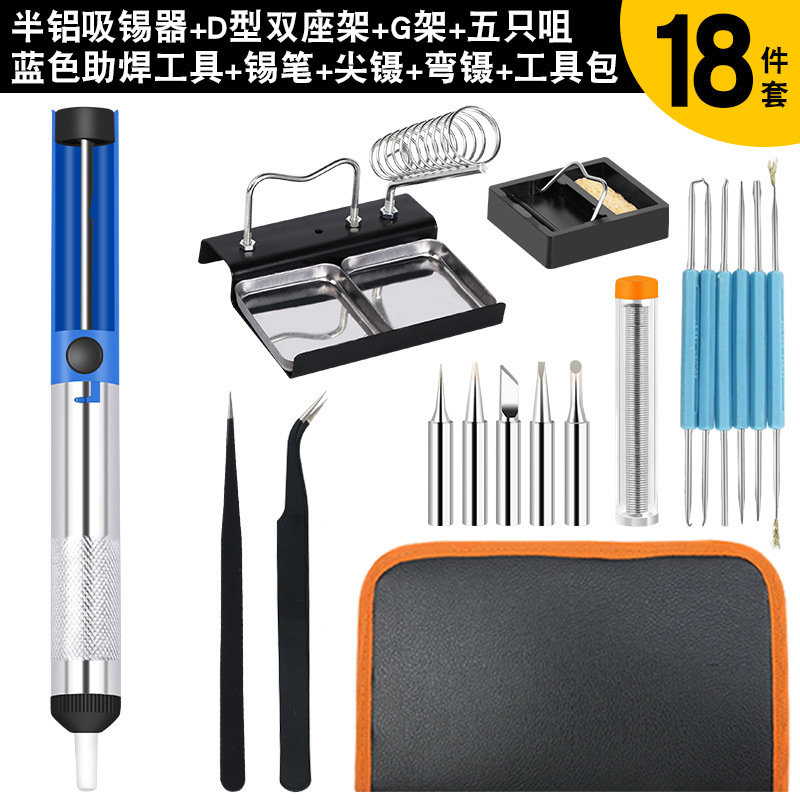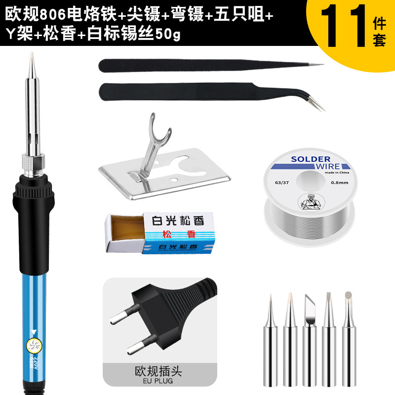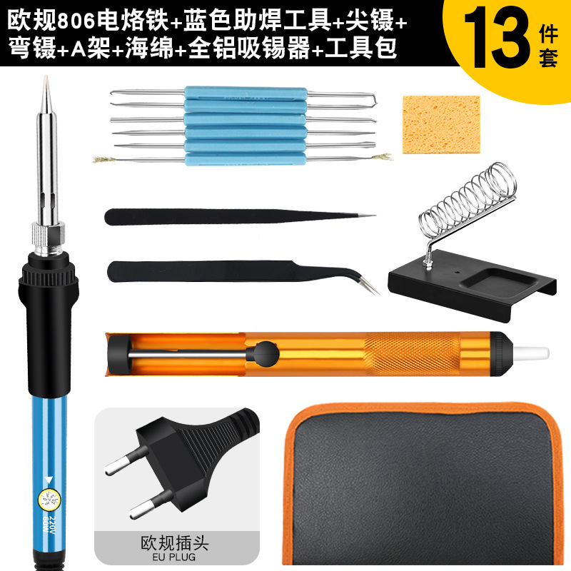 - 型號:806歐規烙鐵+藍色助焊工具+全鋁吸錫器黃色+黑彎鑷子+