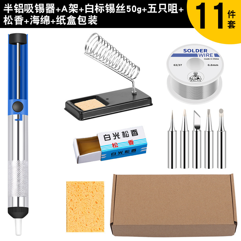 - 型號:全鋁吸錫器+烙鐵海綿+A型烙鐵架+30g錫絲+松香+工具包
