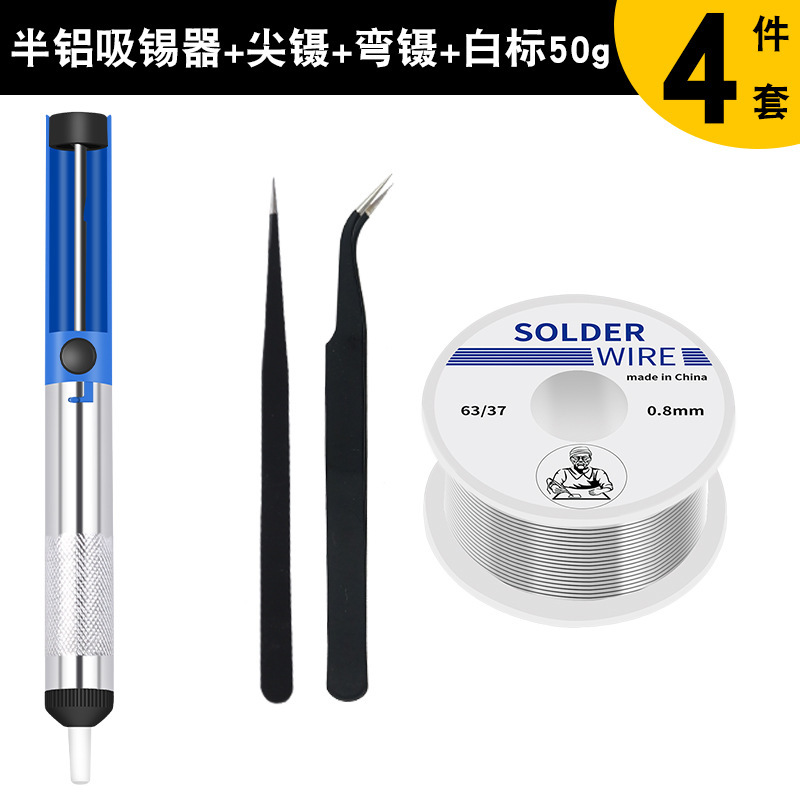 - 型號:半鋁吸錫器+黑彎嘴鑷子+黑尖嘴鑷子+50g錫絲