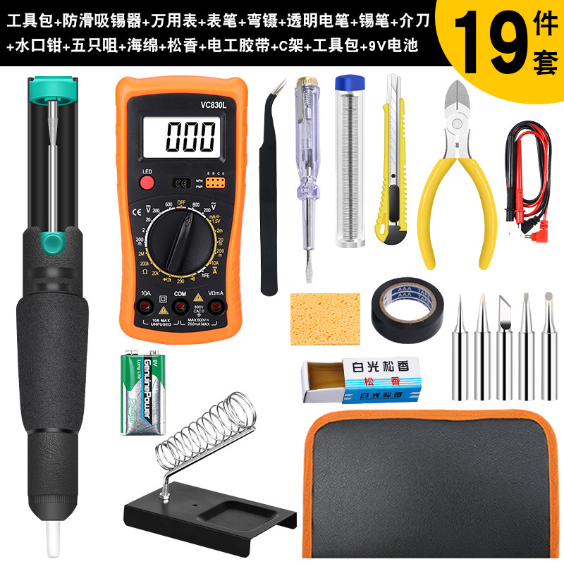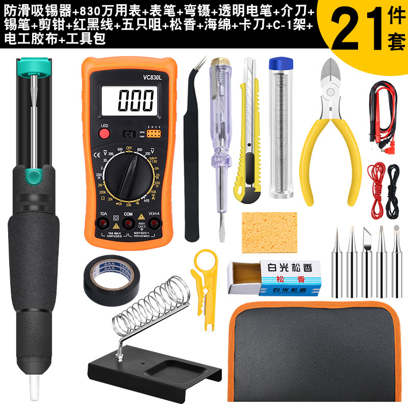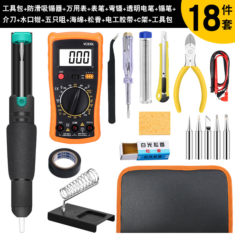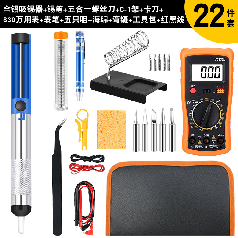 - 型號:C-1架+海綿+5個頭+錫筆藍+830萬用表+彎鑷子+全鋁吸錫