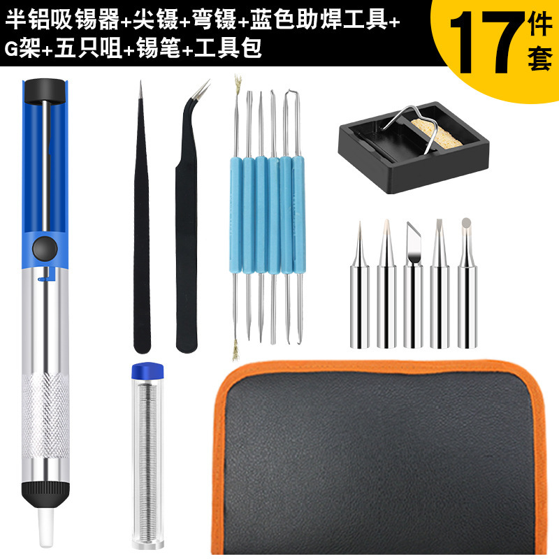 - 型號:藍色助焊工具+半鋁器+彎鑷子+尖鑷子+G型架+5個頭+錫筆