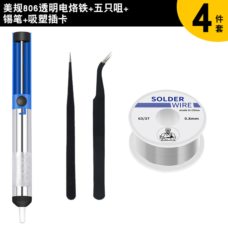 - 型號:806美規透明柄烙鐵+936烙鐵頭五隻裝+錫筆8g橙色蓋+吸