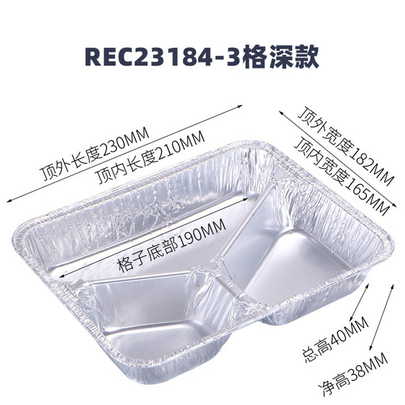 - Specification: 100 sets triple deep curved edge rec23184f-3 length x width x height: 227x177x38mm with aluminum lid