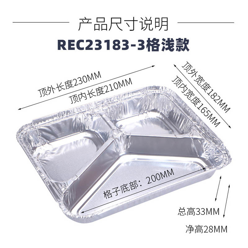 - Specification: 100 sets triple shallow curved edge rec23183f-3 length x width x height: 227x177x30mm with aluminum lid