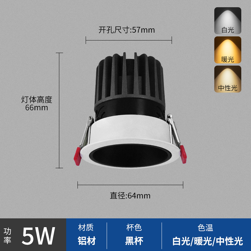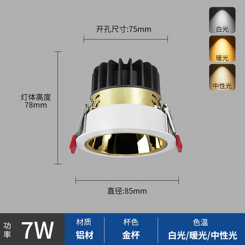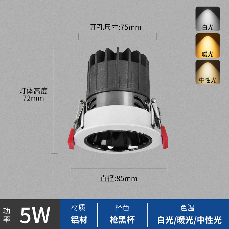 - Power: Black Cup 7W, Hole Opening 75mm, Surface 85mm