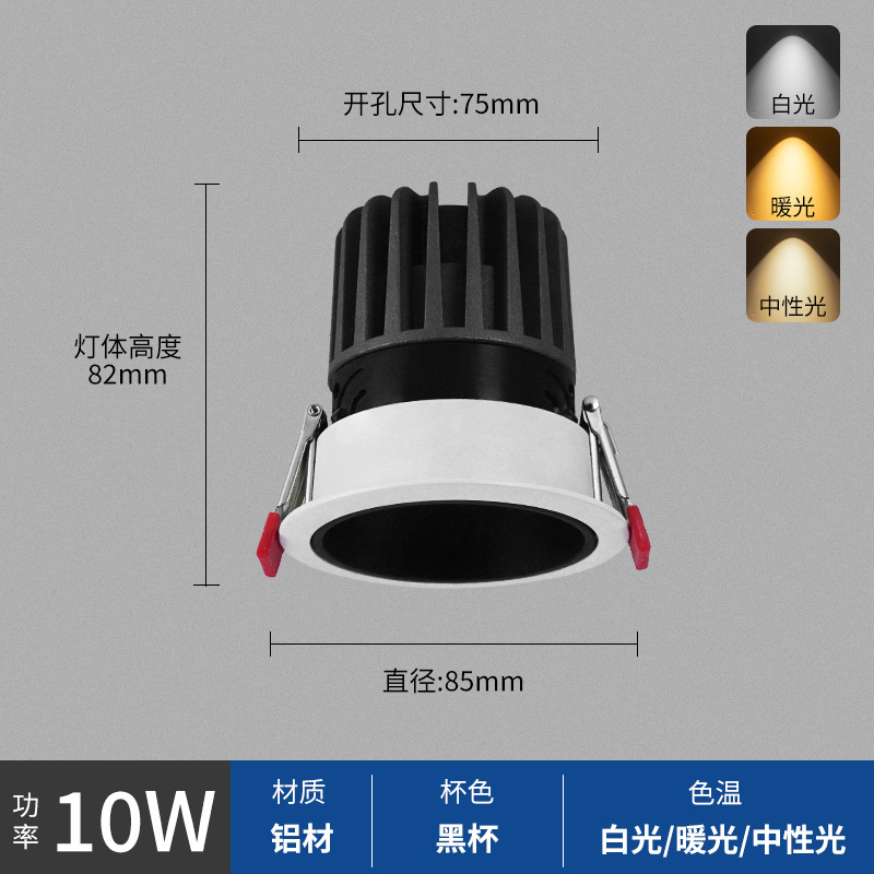 - Power: Black Cup 10W, Hole Opening 75mm, Surface 85mm