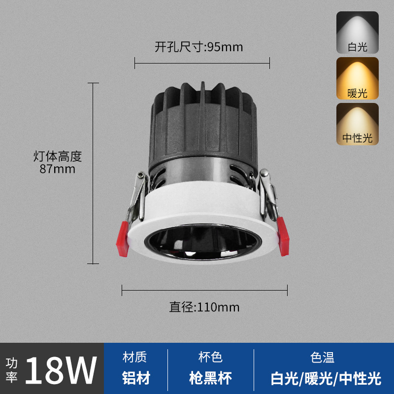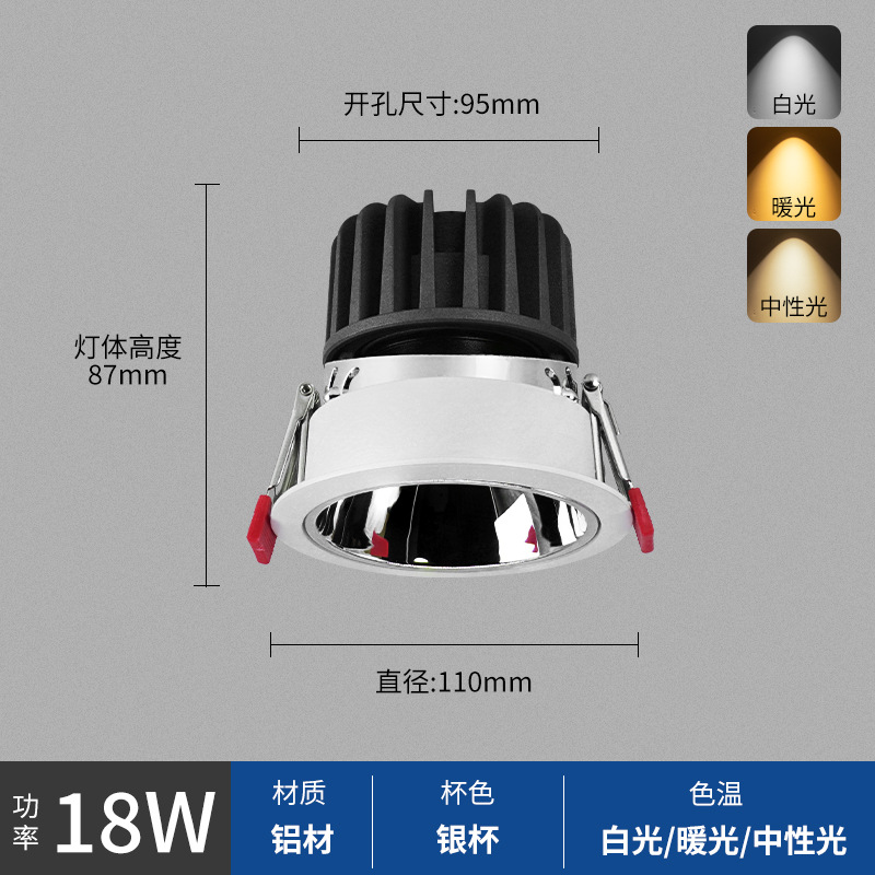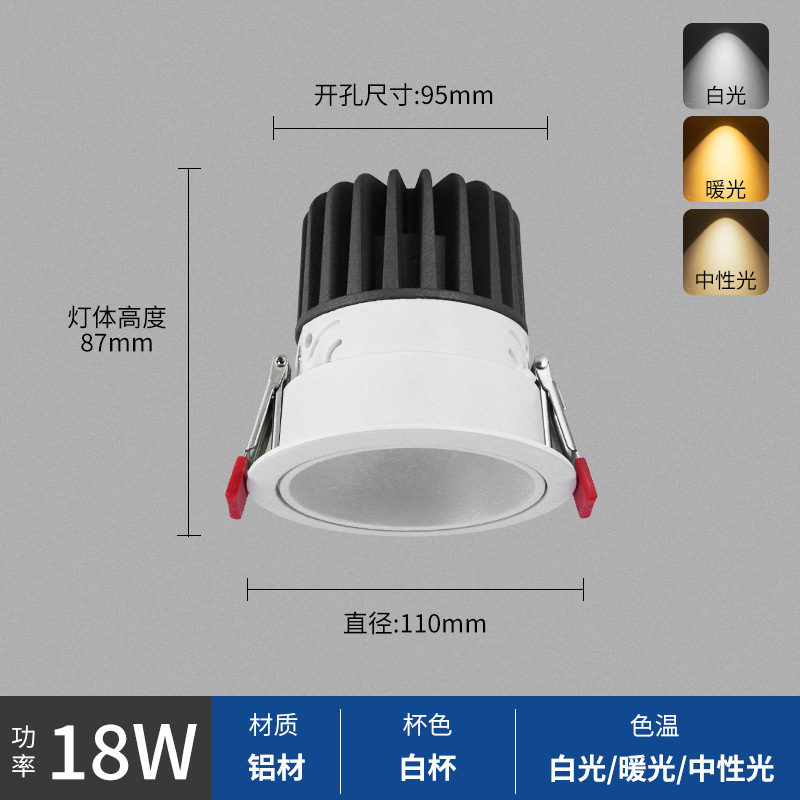 - Power: White Cup 18W, Hole Opening 95mm, Surface 110mm