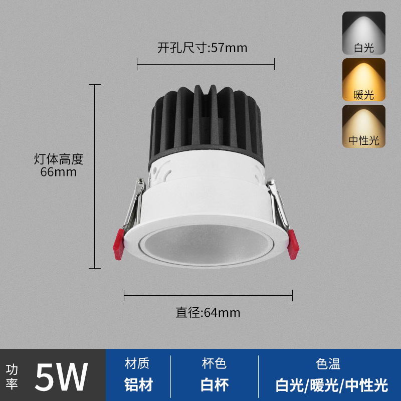 - Power: Small White Cup 5W, Hole Opening 57mm, Surface 64mm